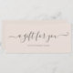 Sencillo y elegante certificado de regalo minimalista de guion rosa y blanco. Este elegante certificado de regalo de guión se ajusta perfectamente a un sobre comercial estándar #10. Perfecto para su marca y negocio.