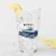 El diseño artístico de cristal de cerveza para los amantes de los coches presenta Chevrolet vintage de 4 puertas de color blanco y azul de los años 50. Personalización con nombre o monograma