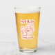 Vidrio de cerveza festivo decorado con una imagen de Santa Claus clásica y letras antiguas de las vacaciones, que le dan un toque nostálgico divertido a las celebraciones de los Navidades.