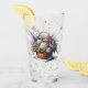 Este es un vaso o vaso de agua que es de 16 onzas o una pinta. Tiene un diseño de una cesta llena de flores de diferentes tipos.