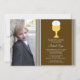 Comience su evento con nuestra tierna y dulce invitación a la Primera Comunión Chalice & Host Photo First sólo para un niño de la Santa Primera Comunión. Nuestra Invitación a la Primera Comunión Fotográfica presenta un cáliz con un anfitrión puesto sobre un fondo marrón con rayas azules pálidas. Fácil de personalizar, sólo agregue su foto y la información del evento y todos están listos para ir. ©Diseños de Zenware