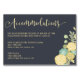 Tarjetas de alojamiento boda de pizarra con flores amarillas y texto de personalizable impreso en fondo oscuro