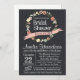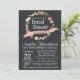 Una caprichosa invitación a la ducha nupcial con una corona floral dibujada a mano, una cinta linda, un divertido texto de estilo poster sobre un fondo de tiza de moda.