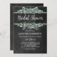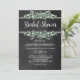 Fijar el tono para una ducha de novia rústica y elegante con esta bonita invitación. Con un exuberante marco de frondosos botánicos verdes sobre un fondo de pizarra gris de carbón, este diseño combina el encanto vintage con la sofisticación moderna. La parte trasera muestra una corona que se puede personalizar con el nombre de la futura novia para un toque único.