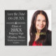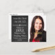 Las imágenes de pizarra son populares, y esta es simple, pero elegante. Su fotografía (en blanco y negro o en color) está en el lado derecho, con su texto personalizado y un emblema de la pizarra de bonito a la izquierda. La parte posterior de la tarjeta tiene un campo de texto adicional si es necesario. Todo el texto, frontal y posterior, se personaliza fácilmente.