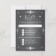 La popular tarjeta de respuesta boda estilo pizarra incluye la opción de incluir opciones para cenar. Esbozado por el borde de desplazamiento giratorio y dado un efecto tipográfico caprichoso que le da al RSVP un aspecto casualmente elegante. También hay elementos de coordinación disponibles.