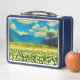 Un beau paysage peint représentant au premier plan un champ de jonquilles et à l’arrière-plan des arbres et des montagnes au loin. Tout cela sous un beau ciel bleu printanier. Créé par fantabuloustef