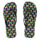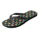 Flip flops púrpura y verde con motivos geométricos de inspiración africana, ideal para excursiones por la playa.