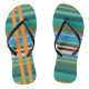 Rayas coloridas verdes, azules y marrones en unas chanclas. Inspiradas en los colores de la vida oceánica.