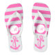 Flip flops con temática náutica de color rosa caliente. El diseño tiene un ancla rosada y un patrón rayado rosado y blanco. En el medio se puede personalizar con el monograma.