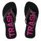 Divertidas chanclas para "chicas de campo" que aman vivir con estilo y lujo! Celebran esa esencia de White Trash / Basura de remolque con texto glamuroso de "basura" con apariencia de glitter rosa brillante en fondo negro,