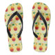 La bebida tropical es un diseño refrescante para la diversión del verano. Estas chanclas ofrecen un favorito de verano, la bebida tropical, con fruta fresca y un paraguas. El diseño es un patrón repetido sobre un fondo amarillo.