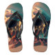 Un gran cráneo se sienta sobre la arena en el océano, al estilo de paisajes surrealistas en 3d, paleta de colores intensa, rojo vivo, ilustraciones vibrantes, paisajes fotorealistas, exploraciones texturales
