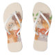 Un par de chanclas con un diseño caprichoso de varios gatos. Los gatos, en tonos naranja, gris y crema, están dispuestos de forma divertida, mostrando sus distintas expresiones y características, el fondo es un beige suave.