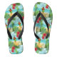 Estas coloridas chanclas con sus exuberantes hojas verdes, hermoso hibisco rojo, playa preciosa y una chica hula más grande que la vida representan una escena idílica. Las divertidas fuentes resaltan el lema vivir, amar, aloha.
