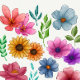Una vibrante variedad de flores pintadas a mano llena el lienzo, mostrando una mezcla encantadora de colores y formas. La cámara realiza un suave paneo a través del arreglo floral, resaltando los intrincados detalles de cada flor. Los girasoles irradian calidez con sus pétalos dorados, mientras que delicadas flores rosadas y azules añaden un toque suave. Las exuberantes hojas verdes se balancean ligeramente, realzando la atmósfera animada. La iluminación es brillante y alegre, proyectando sombras sutiles que dan profundidad a la obra de arte. Esta escena captura la esencia de un jardín en flor, invitando a los espectadores a sumergirse en su belleza.