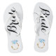 ¡El par perfecto de chanclas para la futura novia! Características de un gran diamante o gráfico de anillo de compromiso y caligrafía.