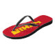 Bandera de España Inscripción Rojo Amarillo Patriótico Flip Flops con la bandera de España en los colores Lava Rojo y Mikado Amarillo mostrados en el flop derecho. La inscripción "España" en blanco se muestra sobre el dobladillo izquierdo. La inscripción está infundida con el patrón de la bandera nacional española. El escudo de armas está integrado e infundido en la inscripción. El fondo está cubierto con el color rojo de la bandera nacional española. Las Flip Flops de España son el socio ideal para los calurosos días de verano y el gran regalo para cualquier español orgulloso de su herencia.