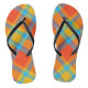 Flip flops con un moderno y alegre patrón de verano dorado en colores brillantes.