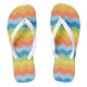 Colores amarillos, naranjas, azules y verdes, un par de chanclas diseñadas con un patrón de ondas multicolores. Personalizar el tamaño del patrón de los flip flops entre otras opciones.