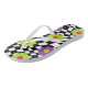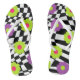 ¡Los rollitos suaves se verán tan lindos este verano! Las chanclas totalmente retro, disponibles en tamaños adultos y niños, presentan un divertido patrón de tablero de ajedrez abstracto en blanco y negro con flores de estilo moderno en tonos violeta, verde limón y rosa caliente. Algunos estilos ofrecen una selección de color de correa.