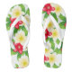 Las chanclas de los adultos se muestran en blanco con una hermosa impresión de flores tropicales. Personalizar este artículo o compra tal cual. Imagen bursátil utilizada