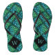 Un par de flops de voladizo negro con un diseño de mosaico repetido de nudo celta azul-verde. Hazlo personal y exclusivamente tuyo con tus iniciales!