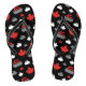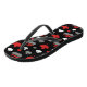 Flip flops con una hoja de arce y roca curvada en rojo, blanco y gris sobre fondo negro. Perfecto para curadores y abanicos.