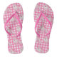 Los flips-flopes rosados retros del caniche y de la guinga ofrecen un modelo de la repetición de caniches rosados retros contra un fondo rosado y blanco de la impresión de la guinga.