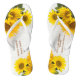 Los flips-flopes de esta boda ofrecen los girasoles hermosos en un fondo de madera blanco rústico. Este diseño es de moda con todo elegante. Tiene una sensación caliente perfecta para el verano o la caída. Este los flips-flopes son ideales para un acontecimiento con girasoles o un tema del otoño. El fondo de madera rústico añade una mirada elegante lamentable elegante y un tacto del vintage. Esto hace un regalo perfecto para la criada del honor, las damas de honor o madre o la novia.