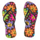 Este es un patrón de flores de halloween groovy en rojo, púrpura, azul, verde y naranja con estrellas en fondo oscuro.