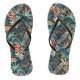 El Boho Colorful Tropical Leaves Flip Flops presenta monstera, hojas de palma en diferentes colores vibrantes.