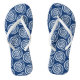 Flip-flops en un patrón de impresión en bloque, basado en una concha de sellado en espiral, en blanco sobre un fondo cobalto azul