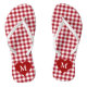 Moderno Monograma Rojo Gingham Check Flip Flops.