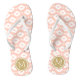 Personalizado imprimió sandalias "flip flop" con un patrón geométrico azteca y su monograma personalizado u otro texto en un marco circular. Haga clic en Personalizar para cambiar los tipos de letra y los colores del texto o para agregar sus propias imágenes para crear un diseño único de un tipo.