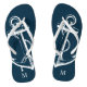 Personalizado imprimió sandalias "flip-flop" con un ilustracion de anclaje náutico rústico vintage y su monograma personalizado u otro texto. Haga clic en Personalizar para cambiar los tipos de letra y los colores del texto o para agregar sus propias imágenes para crear un diseño único de un tipo.