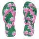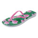 Flip Flops en un patrón de lílilos de agua en tonos suaves de rosa, y almohadillas de lirios verde esmeralda, flotando en un estanque