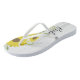 Bride, rústico, de estilo rústico blanco lavado de fondo de grano de madera flip flops con girasoles. Personaliza con novia. Personalizar el estilo de letra, color y tamaño.