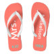 Fondo de coral brillante con la Sra. y Apellido escrito en texto blanco y fecha de boda en azul turquesa. Destino de playa de bonito o copas de luna de miel para la nueva novia. Diseños originales de TamiraZDesigns.