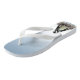 Estos chanclas presentan adorables pingüinos africanos en una cornisa rocosa sobre un fondo azul cielo. Los pingüinos son pájaros acuáticos, sin aves cuyas alas se han convertido en aletas. Cada uno tiene una franja negra y manchas negras en el pecho. El patrón de puntos es único para cada ave, como las huellas dactilares humanas. Tienen glándulas rosas encima de sus ojos y pies rosados y negros.