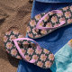 Estas chanclas femeninas y elegantes son perfectas para salir de la ducha o pisar la playa y presentan la imagen fotográfica de una flor de dalia de collar rosa sobre un fondo negro e impresa en un patrón repetitivo. ¡Un diseño floral encantador! Seleccione la talla del pie junto con otras opciones.