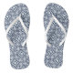 En verano y en la costa en tonos azul marino, azul celeste y blanco crujiente, nuestras chanclas con estampado se inspiran en los azulejos tradicionales de España y Portugal. Salir en un estilo de brisa con estos laberintos geométricos trenzados de forma intrincada.