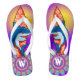Tiburón Bite surf mandala Flip Flops. Personalizado inicial Flip Flops en púrpura. Correas blancas. Totalmente verano, divertido diseño de moda de tiburón y surf hippy boho. Ilustracion de gráficos de rana caliente. Véalo en una variedad de otros regalos de buen gusto.