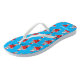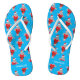 Flip flops cubierto de manatíes con ropa de Santa sobre un fondo azul con un nombre que puedes cambiar.