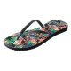 Flopas negras con un patrón de plantas tropicales verdes, melocotones, crema y azules, son perfectas para vestir tu ropa para cualquier ocasión.