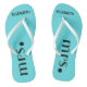 ¡Una adición linda a su playa del destino o boda del poolside! Baile la noche lejos en estos flips-flopes cómodos del freno. El color de fondo de la muestra es Tiffany, azul-tecleo "personalizar de la aguamarina él" para cambiar color. La palabra "señora", en negro con el nombre de las novias personalizado. Para considerar el tirón a juego del novio los fracasos satisfacen para visitar mi tienda "la princesa de Hungarican" en www.zazzle.com/hungaricanprincess*. Mire en mi categoría del departamento de los "flips-flopes". ¡Enhorabuena!
