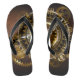 Antiguo, fantásticos relojes con engranajes de oro y latón sobre un fondo marrón y oxidado. Estilo Steampunk.