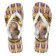 Los ilustraciones originales de ZoeSPEAK en esta amplia correa Flip Flops presentan un retrato del compositor de música clásica Wolfgang Amadeus Mozart. El retrato es un perfil enmarcado en los ilustraciones originales de Zoe de un marco dorado oval ornamentado, que cuelga sobre un fondo de papel pintado púrpura con racimos dorados de uvas en filas y rayas verticales blancas y lavanda.