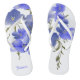 Chancletas florales personalizadas con hermosas flores azules sobre un fondo blanco. Personaliza el nombre.
