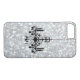 Una divertida y coqueta lámpara de araña acentuó a este funda del iPhone 7 en un brillante fondo de bokeh plateado. Nota: no se usan purpurinas ni secuencias para hacer este funda, el fondo brillante de plata es un ilustracion de fotos.